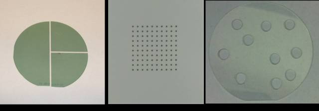 圖1 超快激光切割碳化硅(左)鉆孔柔性陶瓷(中)切割藍(lán)寶石(右)