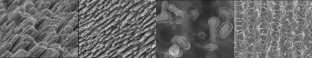 圖2 超快激光在不同材料上加工的微納米結(jié)構(gòu)
