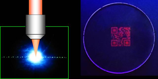 圖4 超快激光在玻璃內(nèi)部制備的熒光二維碼